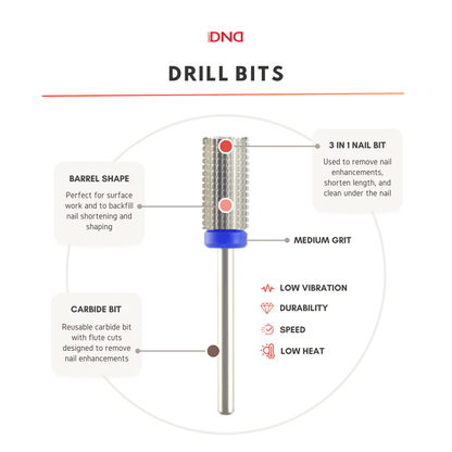 3D M – Silver – Our carbide drill bit's barrel shape is perfect to backfill preparatory surface work such as nail shortening and shaping. The straight flute cuts on the 3D M allows the user three different technical applications: removing nail enhancements, shortening nail length, and cleaning under the nail. With its medium grit size, this bit is best used for thinning, reshaping, and refining gel polish nail enhancements.