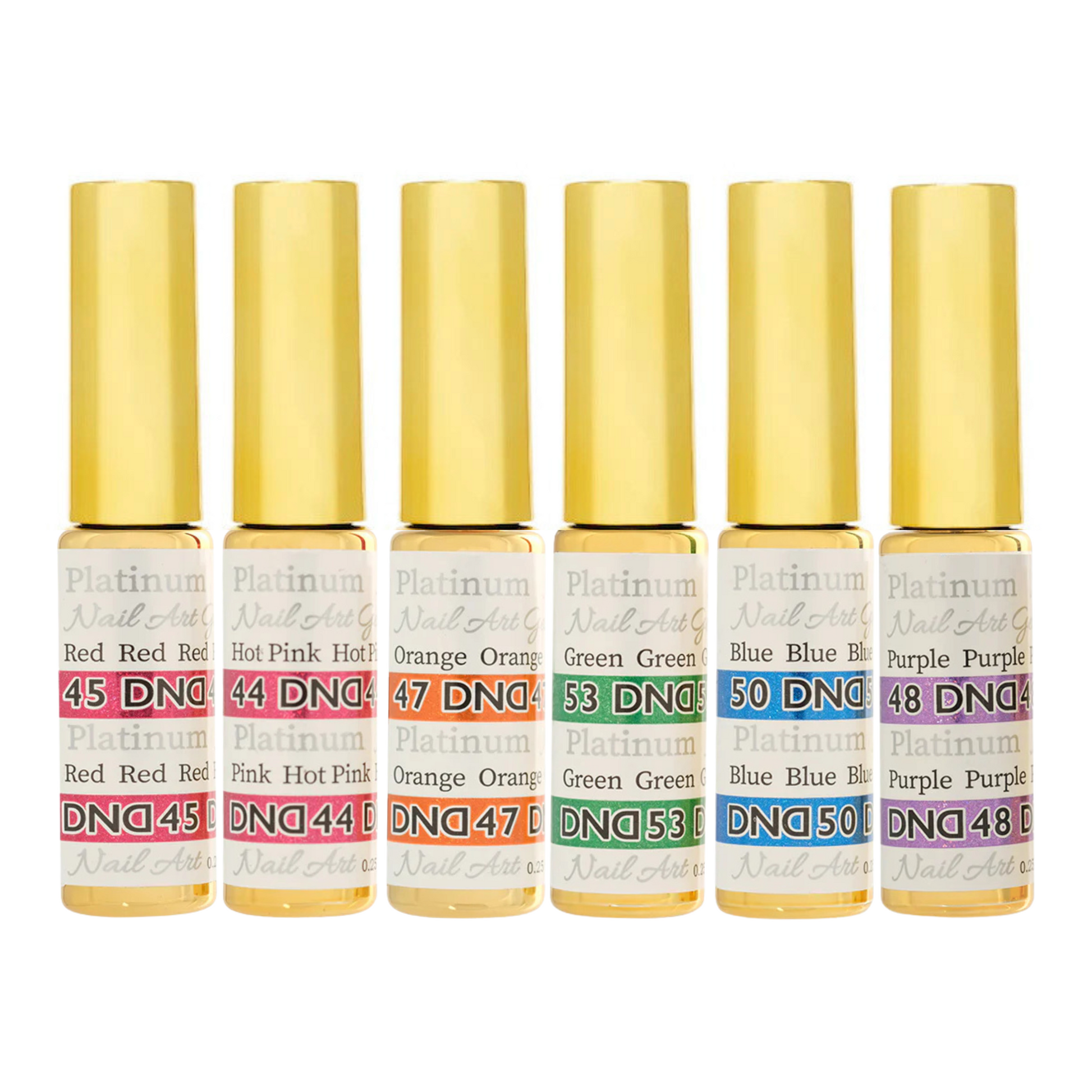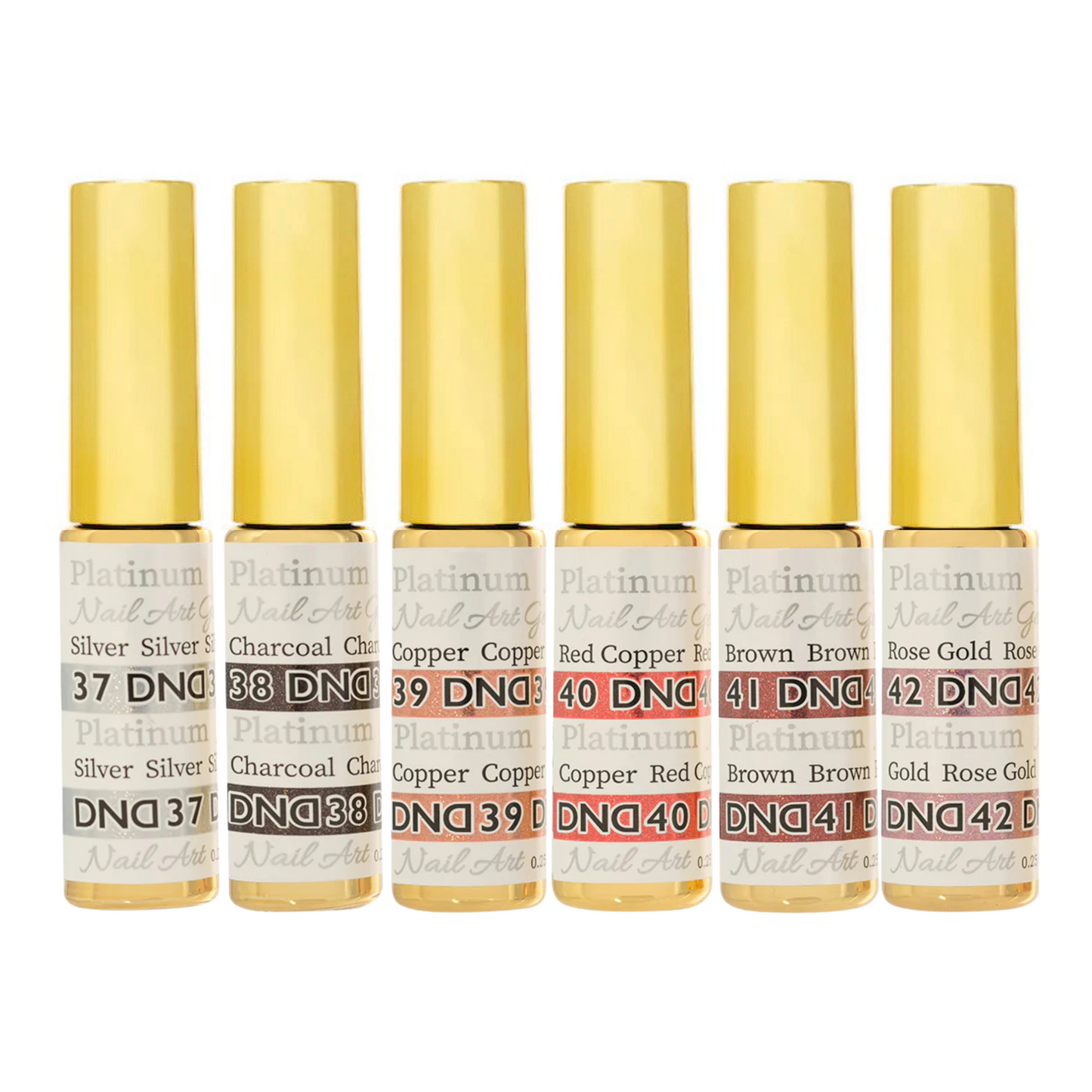 Impress with our signature Platinum DND Gel Art Liners for a more subtle shimmer! Compose your next masterpiece with confidence. For 20% more holographic power, try our Palladium DND Gel liners.