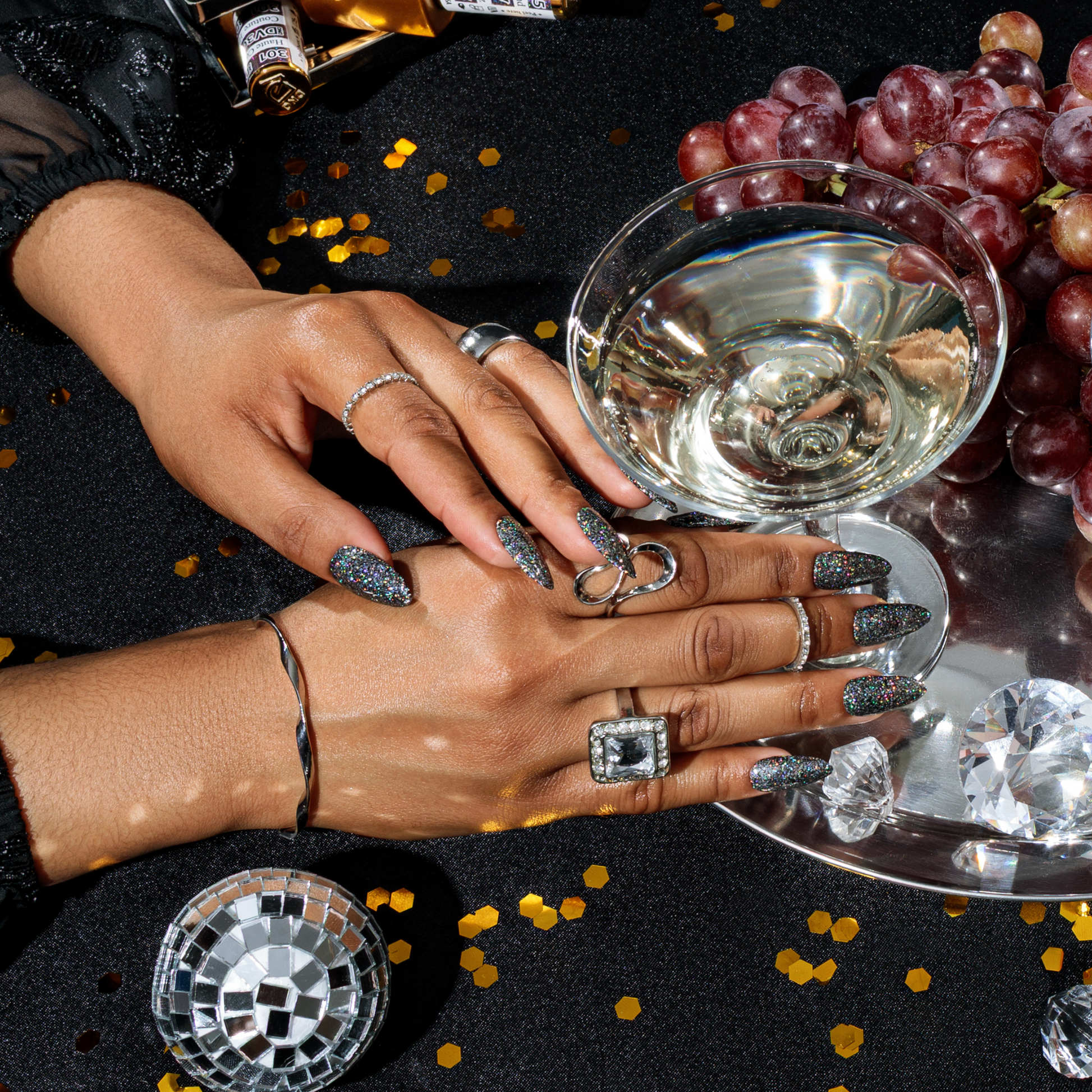 Tuxedo Trifecta DIVA #327 (black) — Elevate your nights out with this sleek black glitter threaded with holographic flakes for a look that hits like a perfectly tailored suit…or your favorite little black dress. It’s giving classic, chic, and dazzling in just the right places.