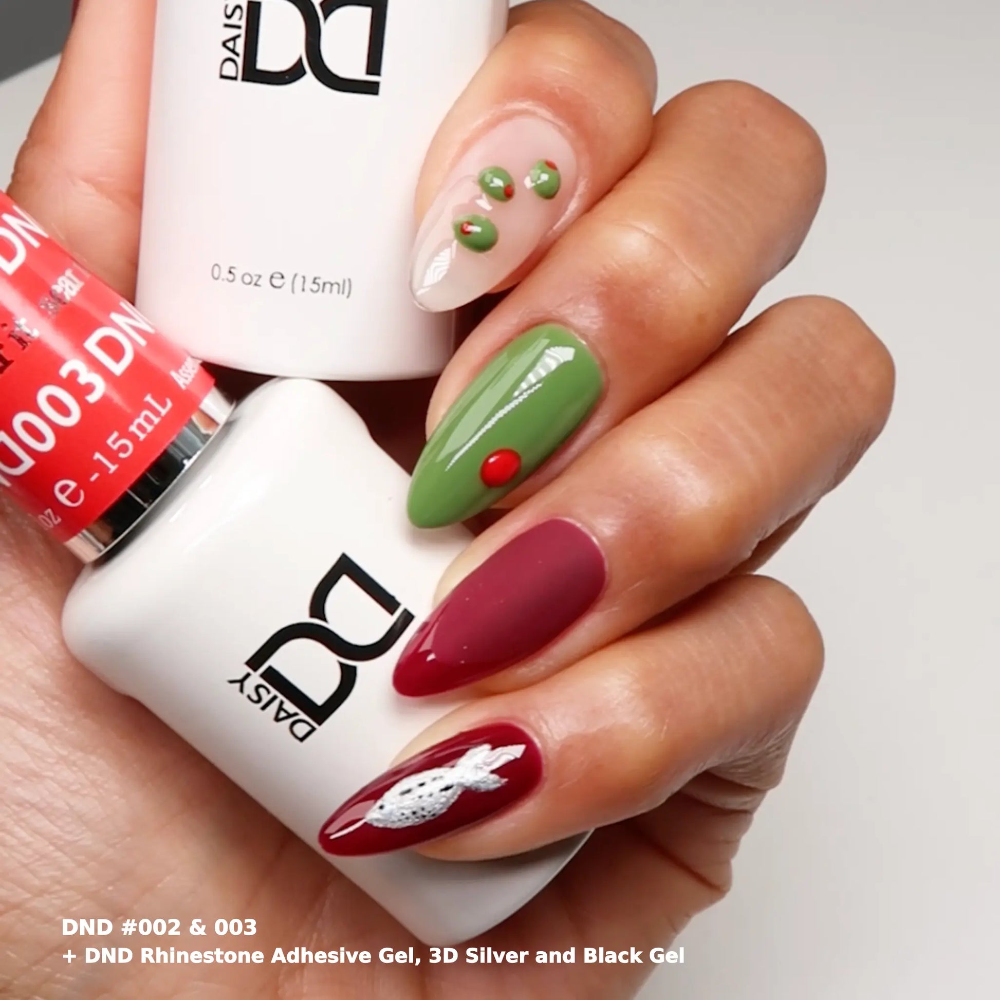Following a professional 3 step gel system: DND Gel polishes needs to be cured under a LED lamp, used with any DND, DC, or DIVA Base and Top Gel. Matching nail lacquers are used separately and need to air dry.